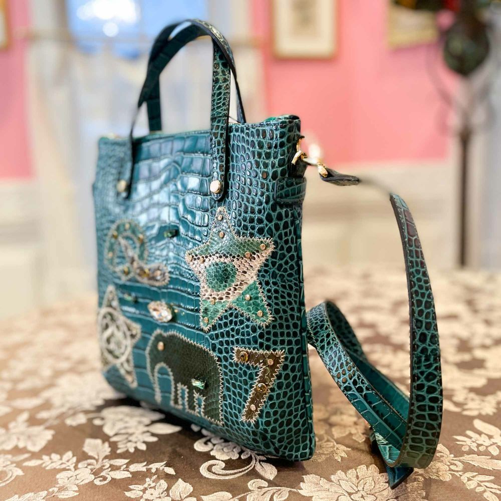 ■商品説明イタリアで有名な高級革ブランド「SILVANO BIAGINI」とコラボしたセブンシスータズロゴ入り牛革型押し加工肩下げバッグ✨パイソン革パッチワークは完全オリジナル!他には手に入らない逸品です🌟