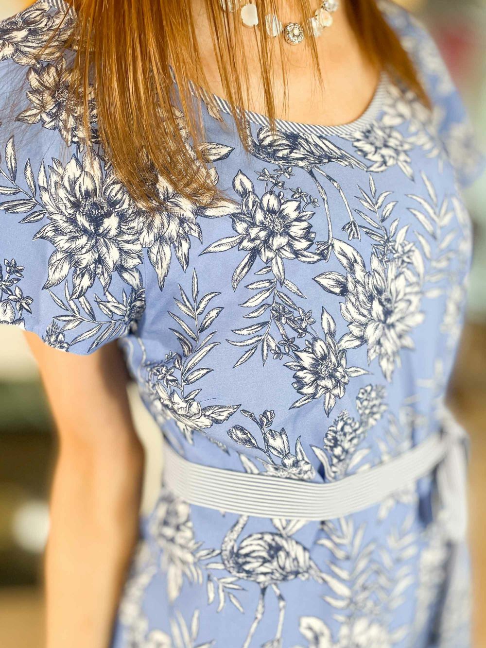 ■商品説明フランスのファッションブランド「telmail」のワンピース鮮やかなパープルブルーにホワイトの花柄が春らしさを演出