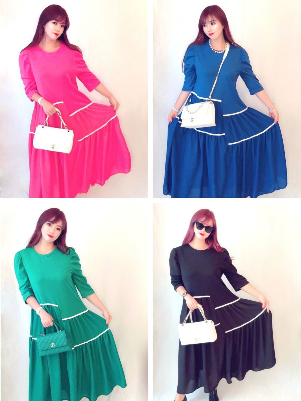 ■商品説明セブンシスターズオリジナル🌹大人気商品「ティアードワンピース」の2023春夏バージョンが新登場✨新色も登場し全6colors🌟とっても可愛いバルーン袖がアクセントの7分袖仕様🌟