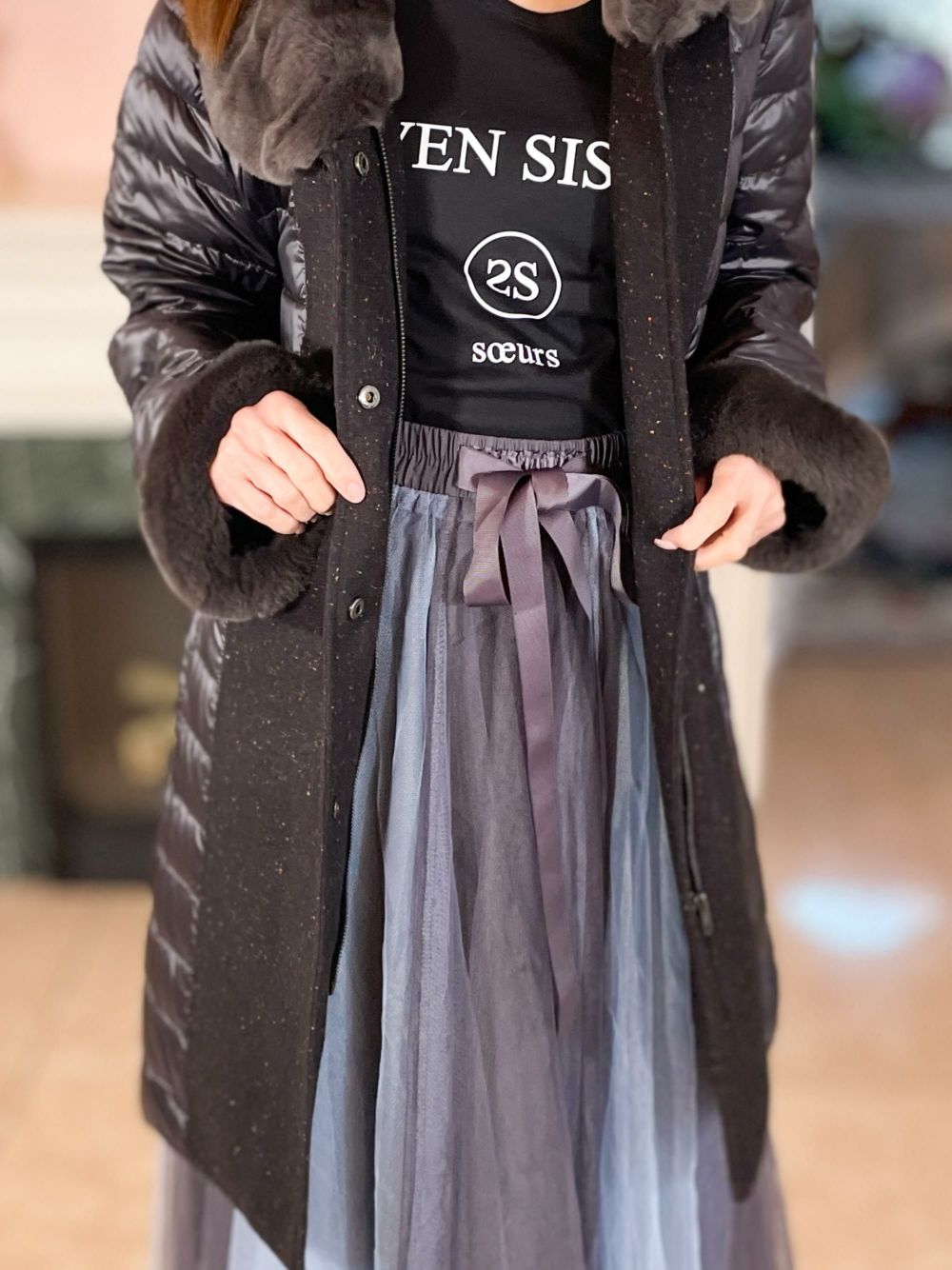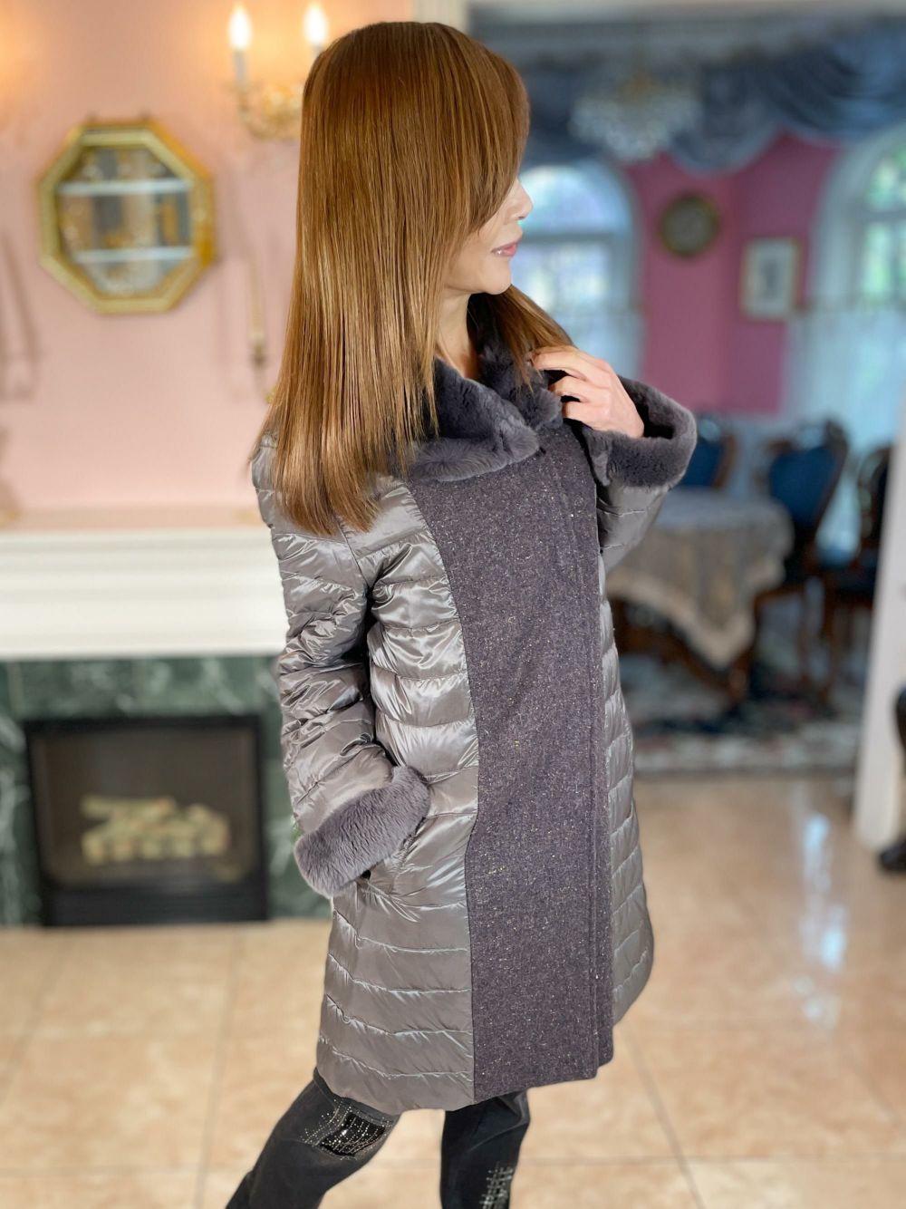 ■商品説明襟袖部ラビットファーが付いたダウンコート軽量なダウン&フェザーとファーを用いているので軽いのに保温性抜群センターラインのデザインがおしゃれポイント表面には撥水加工が施されています
