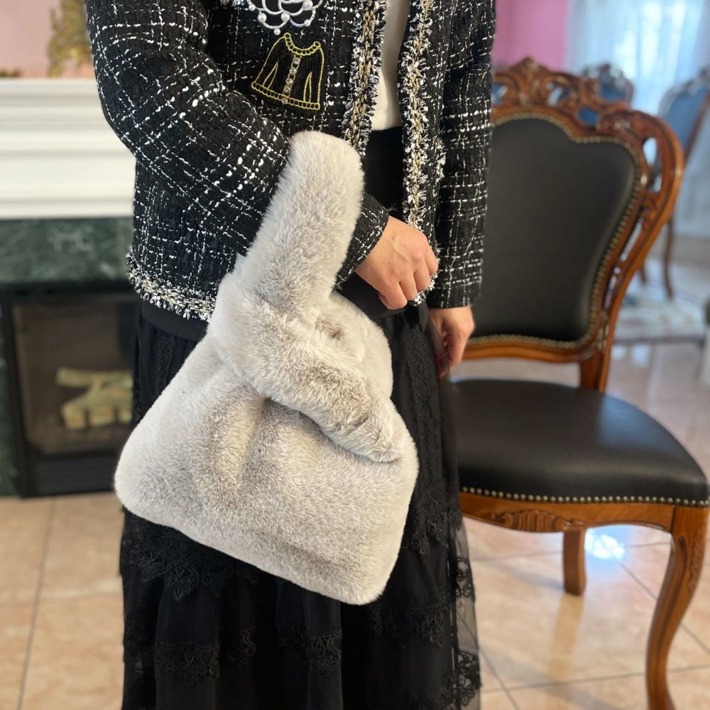 ■商品説明高品質のフェイクファーを豪華に用いたオリジナルフェイクファーバッグ。華やかなファーは触り心地も滑らか☆ふわふわゴージャス感が目を引くオシャレアイテムです。
