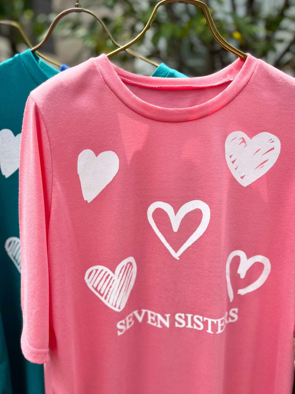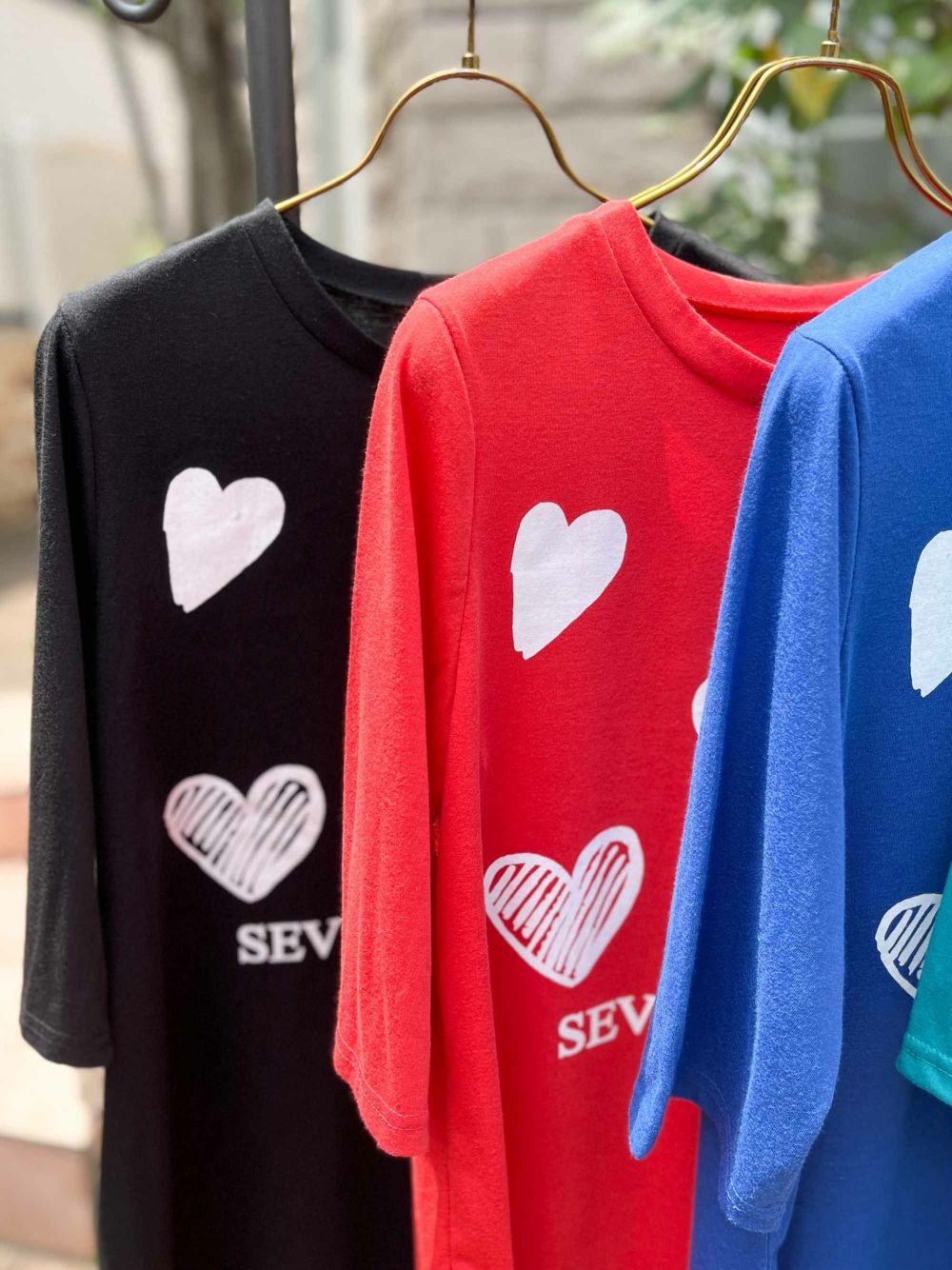■商品説明セブンシスターズオリジナル❣️Aラインで美シルエットのオリジナルハートチュニック💖夏にピッタリ爽やか素材で着回し抜群✨全5colors🌟大人可愛いハートデザイン❤️