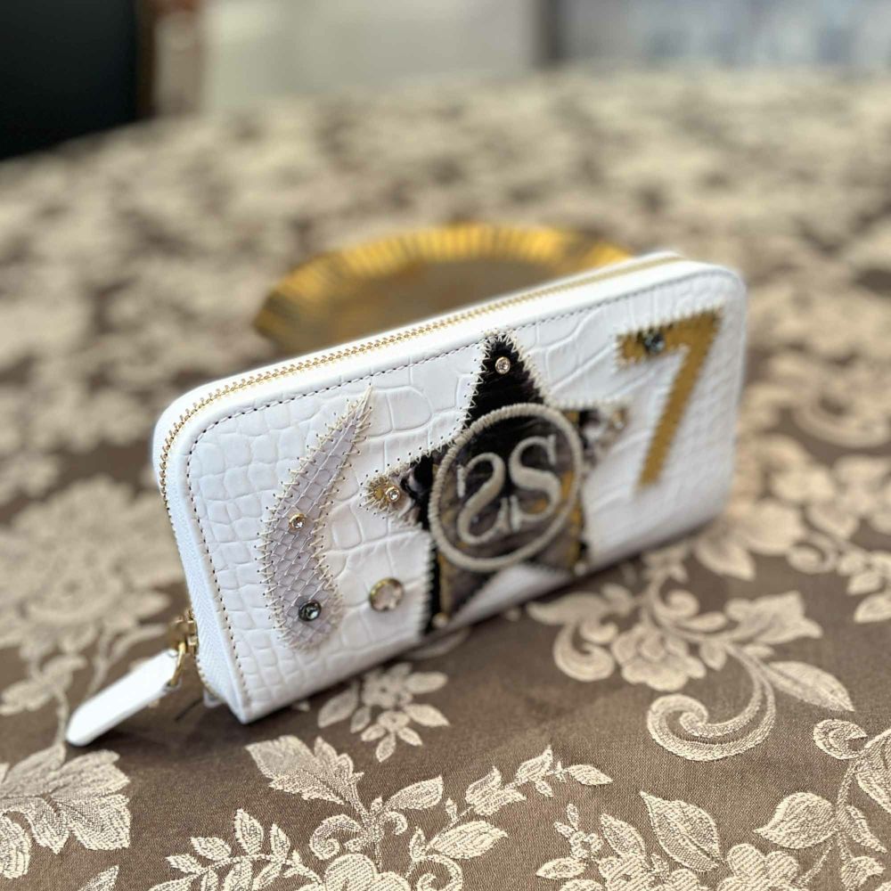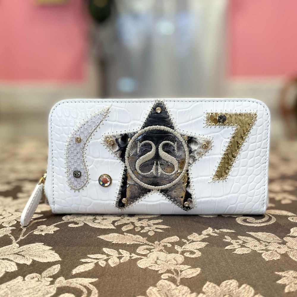 ■商品説明イタリアで有名な高級革ブランド「SILVANO BIAGINI」とコラボしたセブンシスータズロゴ入り牛革型押し加工長財布✨パイソン革パッチワークは完全オリジナル!他には手に入らない逸品です🌟